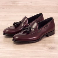 Unique Handcrafted Croco Black + Burgundy Polished calf Tasseled Loafer