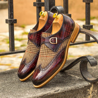- Unique Handcrafted tweed sartorial + burgundy patina patina Single Monk