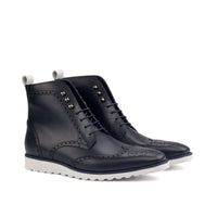 Unique Handcrafted Black Military Style Boot w/ Wedge Sole