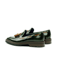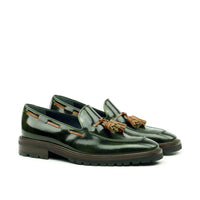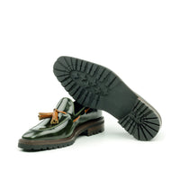 Unique Handcrafted Green Polish Calf Laceless Loafer w/ Tassles