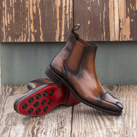 Unique Hand-Painted Brown Patina Chelsea Boot