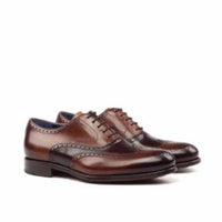 This oxford, closed laced shoe with full brogue is perfect for any formal dress occasion. The chocolate brown color with a splash of darker brown ties any formal outfit together for a sharp look that any man is looking for.