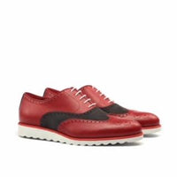 Unique Handcrafted Full Brogue Pebble Grain Red Wedge White Sole