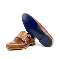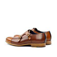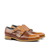 CROESUS - Unique Handcrafted Cognac Box Calf Double Monkstrap W/ Cap Toe