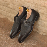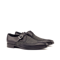 Unique Handcrafted Black Flannel Grey Single Strap Monkstrap