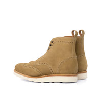 Unique Handcrafted camel lux suede Military style Brogue Dress Boot w/ Wedge Sole