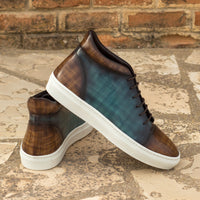Unique Handcrafted High Top Sneaker - Patina Medium - Crust Patina Brown-Crust Patina Turquoise