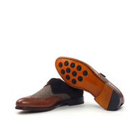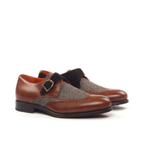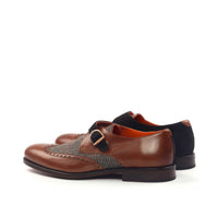 Unique Handcrafted Dark Brown Single Strap Monkstrap w/ with Suede & Tweed Highlights